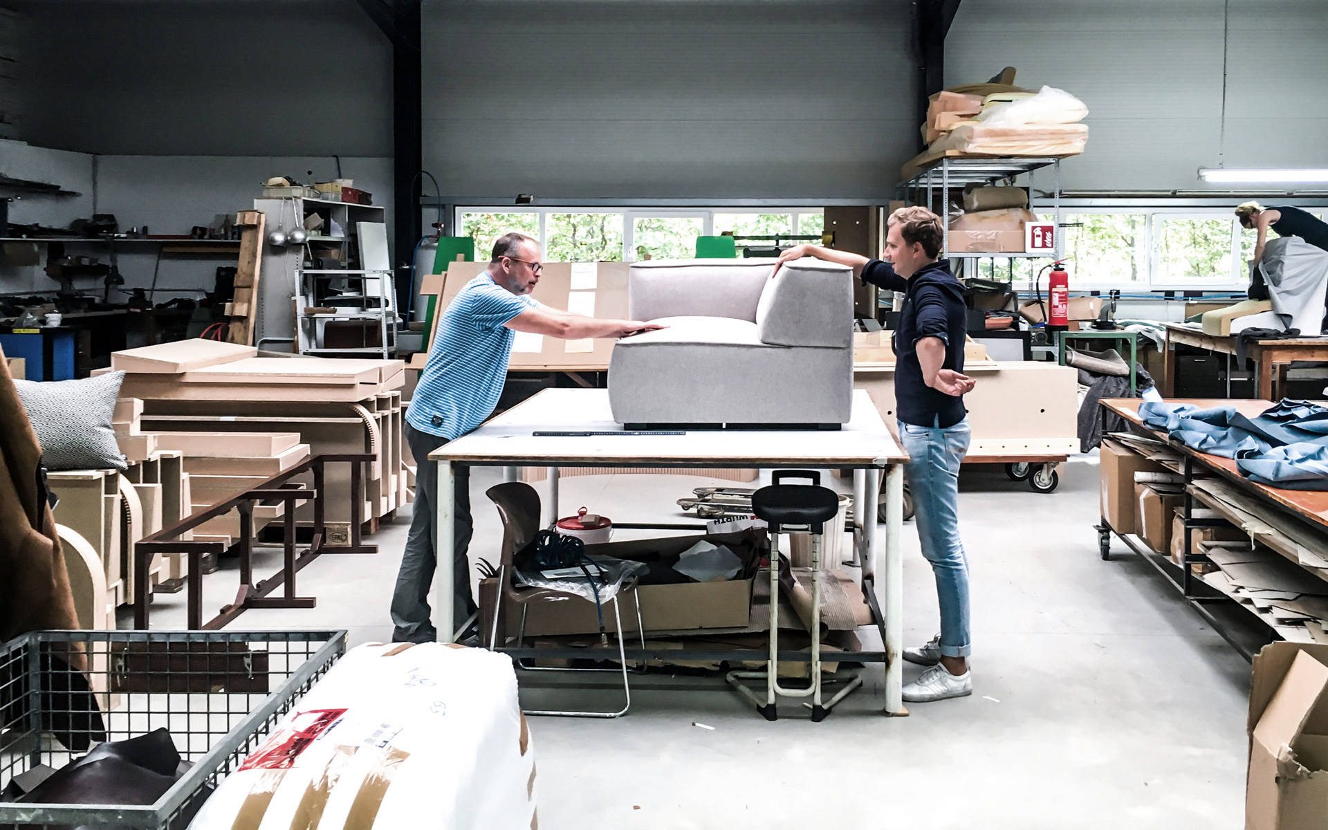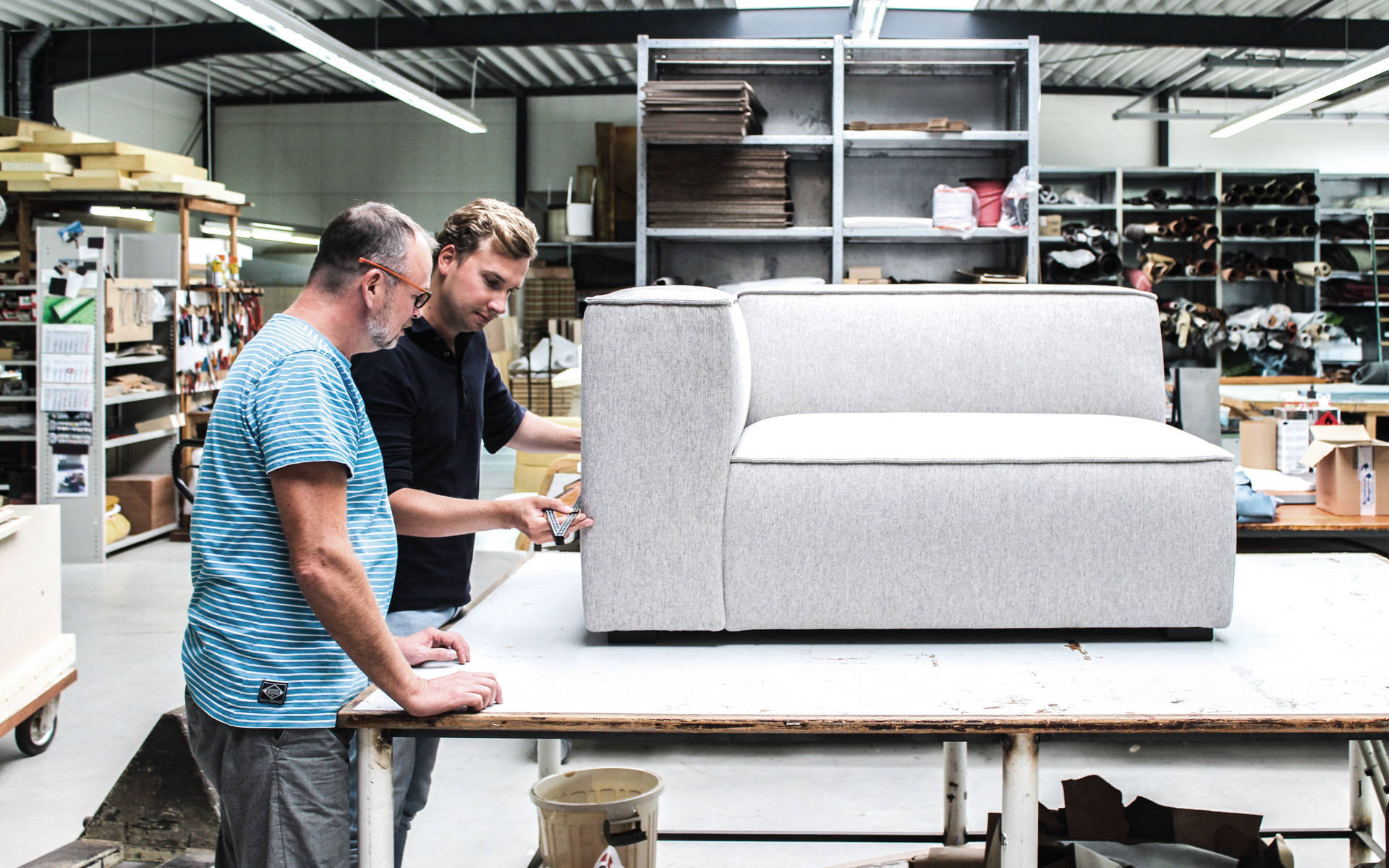 Wir haben 2015 als klassische Retailer begonnen und überwiegend niederländische Produkte eingekauft und in unserem Showroom verkauft. Immer wieder kam die Frage der Kunden, wo die Produkte herkommen bzw. wo sie produziert werden. Oft mussten wir dann ausweichend antworten, dass Teak Hocker aus Indonesien oder Sofas aus polnischen Werken kommen, was für viele Kunden eher eine Enttäuschung war. Als wir dann 2017 mit unserer eigenen Kollektion gestartet sind, war für uns von Anfang an klar, dass wir im Vergleich zu andern Marken stolz sein sollten, dass unsere Produkte nachhaltig, fair und regional produziert werden und wir das proaktiv kommunizieren sollten. Wir sind überzeugt, dass die Geschichte hinter unseren Möbeln heute auch maßgeblich zum Erfolg beiträgt.